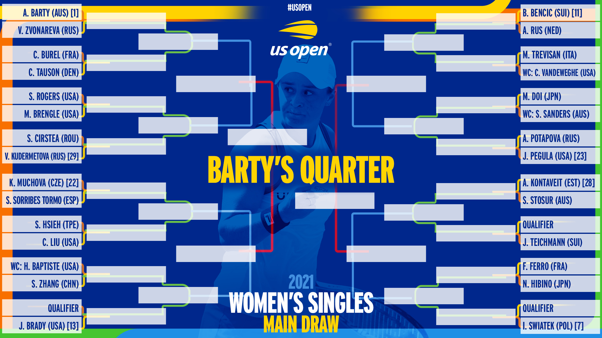 Us Open Tennis On Twitter Drum Roll Please The Usopen Women S Singles Draw Is Here With No 1 Seed Ashbarty Drawing Belindabencic Amp Iga Swiatek In Her Quarter Https T Co Ianlshey8p Twitter